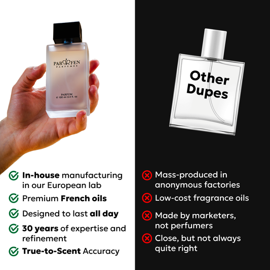 Parfen isn’t just another dupe. We handcraft our scents with premium French oils, cruelty-free practices, and attention to detail that others couldn’t match.